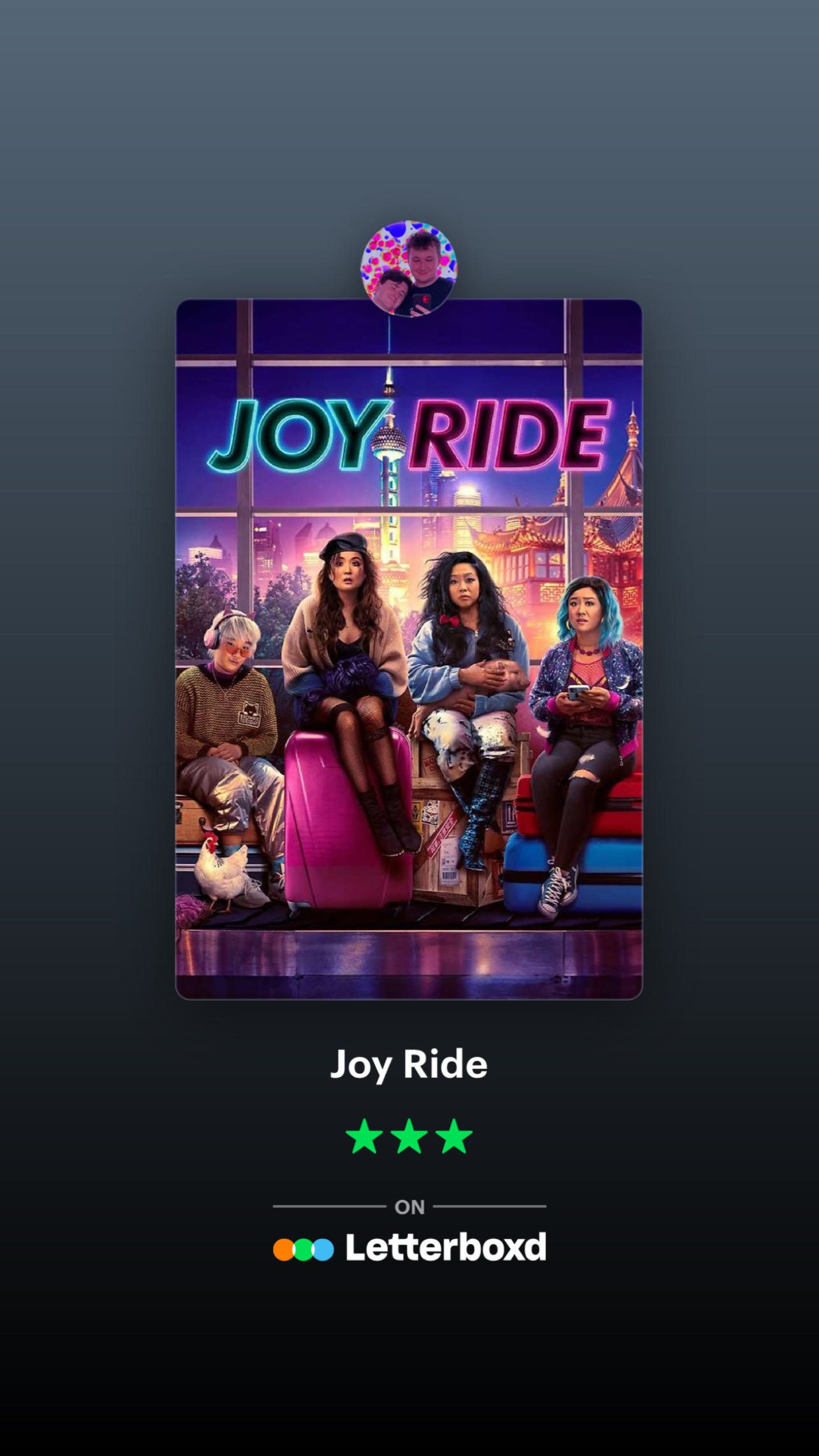 i watched joy ride this weekend. i was going to start adolescence but i will absolutely get there. i wanted something light and fun for the day that was in it.